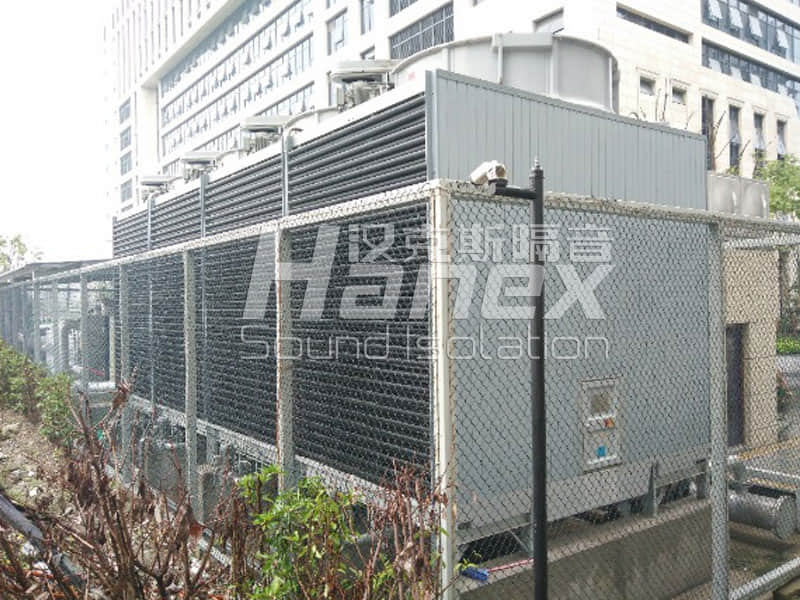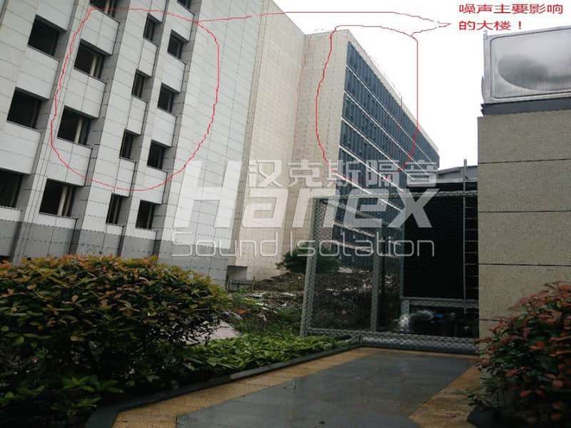 同花順大樓冷卻塔運行時嚴重影響了西面周圍住宅樓的聲環境,即四臺冷卻塔運行時,其風口噪聲為93dB(A),進風口處噪聲值為83 dB(A),其噪聲造成西面住宅樓的窗外噪聲超標,其窗外大致為73dB(A),需進行降噪處理。