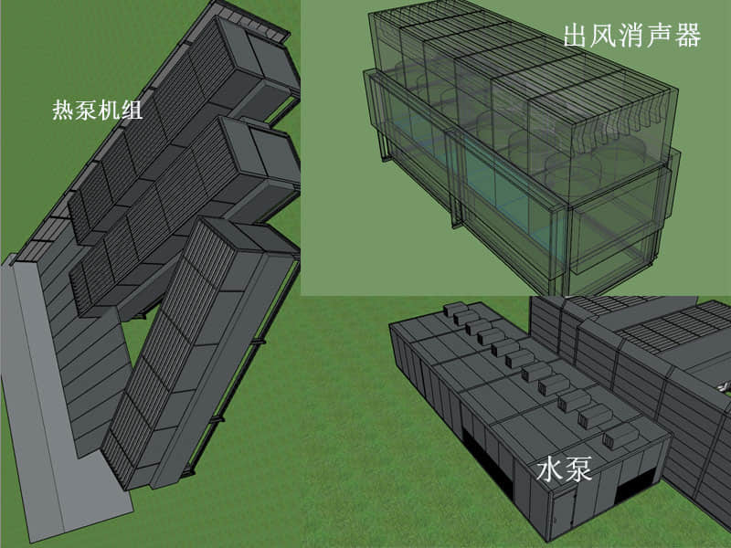 1、風冷冷水(熱泵)機組出風口安裝排風消聲器;