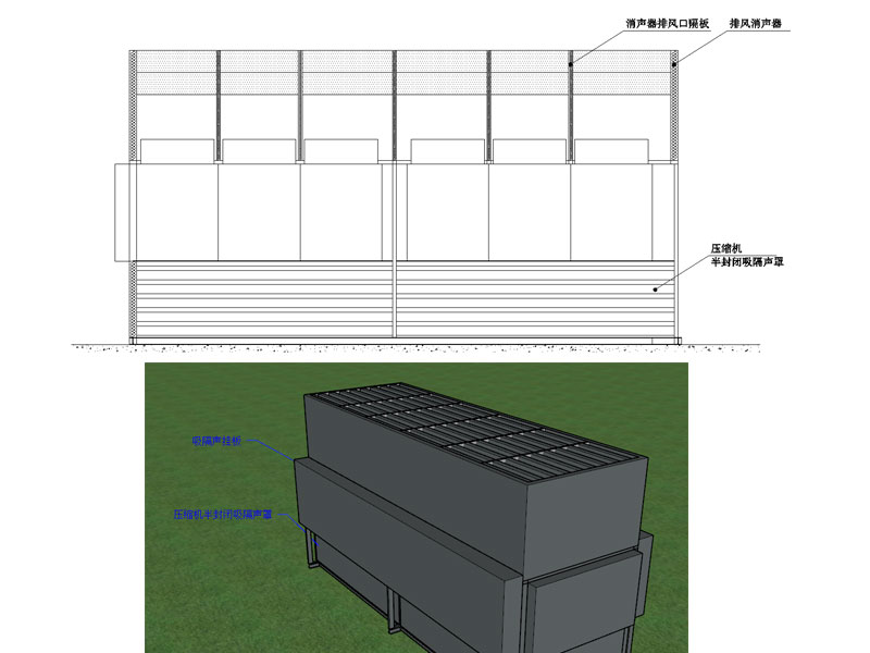 2、底部壓縮機四周安裝半封閉吸隔聲罩;