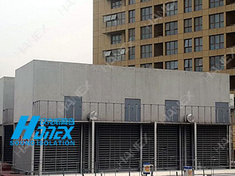 德盈廣場東面3組冷卻塔設(shè)備正常運(yùn)行產(chǎn)生90-95分貝噪聲,對周邊公寓、酒店、辦公區(qū)造成不良影響。漢克斯隔音設(shè)計(jì)1.冷卻塔出風(fēng)口消聲器,2.冷卻塔四周安裝吸隔聲屏障,工程結(jié)束后敏感區(qū)噪聲測量值低于45分貝。